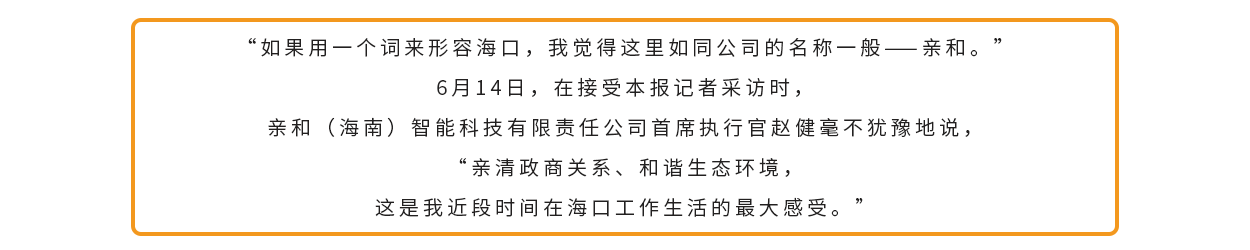 本文转载自公众号“海口日报” (微信号 hkwb1988),原文链接:看海口⑪丨亲和(海南)智能科技有限责任公司首席执行官赵健:“将公司总部设在海口是不二之选” (qq.com)